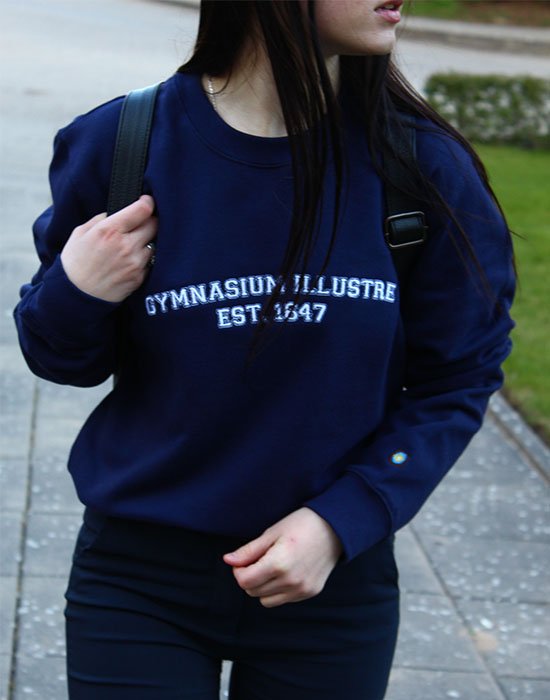 Šilti ir patogūs megztiniai skirti šviesiosios gimnazijos bendruomenei. Megztinis su išsiuvinėtu užrašu: GYMNASIUM ILLUSTRE EST. 1647. Medžiagos sudėtis: 80% medvilnė, 20% poliesteris.